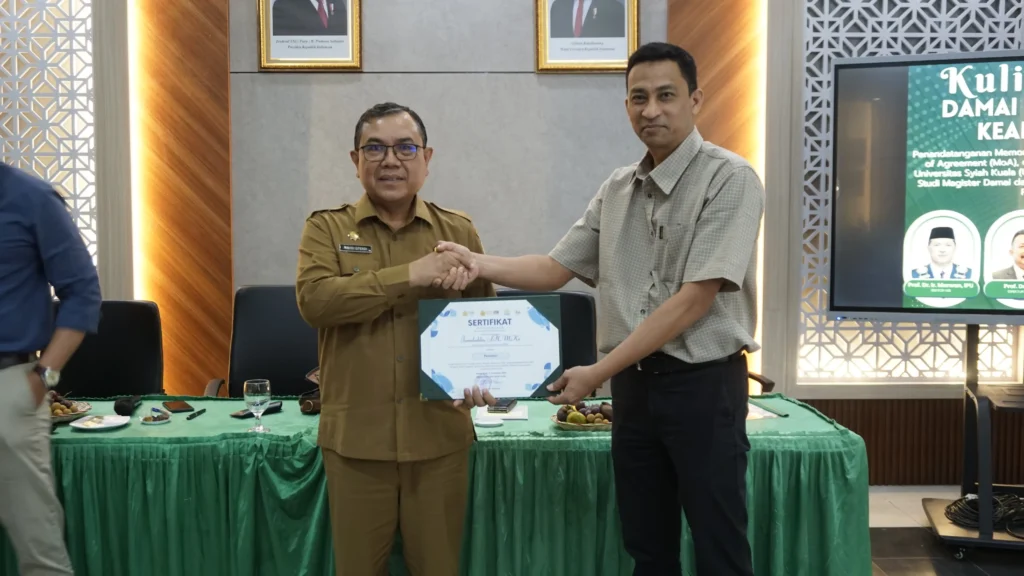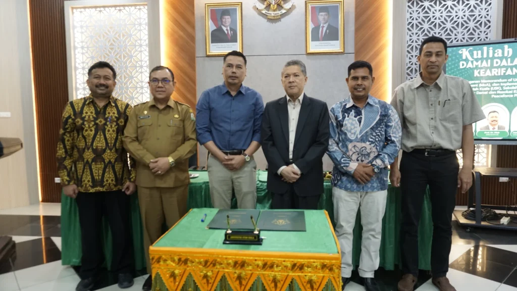 Banda Aceh, 11 November 2025 — Sekolah Pascasarjana Universitas Syiah Kuala (SPs USK) menggelar kegiatan Kuliah Tamu bertajuk “Damai dalam Bingkai Kearifan Lokal” yang dirangkaikan dengan penandatanganan Memorandum of Understanding (MoU), Memorandum of Agreement (MoA), dan Implementation Agreement (IA) antara Universitas Syiah Kuala (USK), Sekolah Pascasarjana (SPs), dan Program Studi Magister Damai dan Resolusi Konflik (MDRK) dengan Nonviolent Peaceforce Philippines.